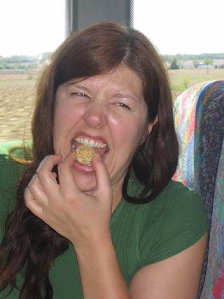 The fondue was sublime and I learned a thing or two about really good fondue technique. We shopped a bit in the store. Sarah, in all her sarcasm, feigned interest in Wisconsin Butter Cheese Pumpkin Balls. As a result, the kind Wisconsiner (Wisconsinite?) gave her a box for free. So, I’m now watching Sarah about to indulge in said Wisconsin Butter Cheese Pumpkin balls. To quote Sarah post-taste, “it’s not that bad.” I think she just needs more kirsch to top it off.